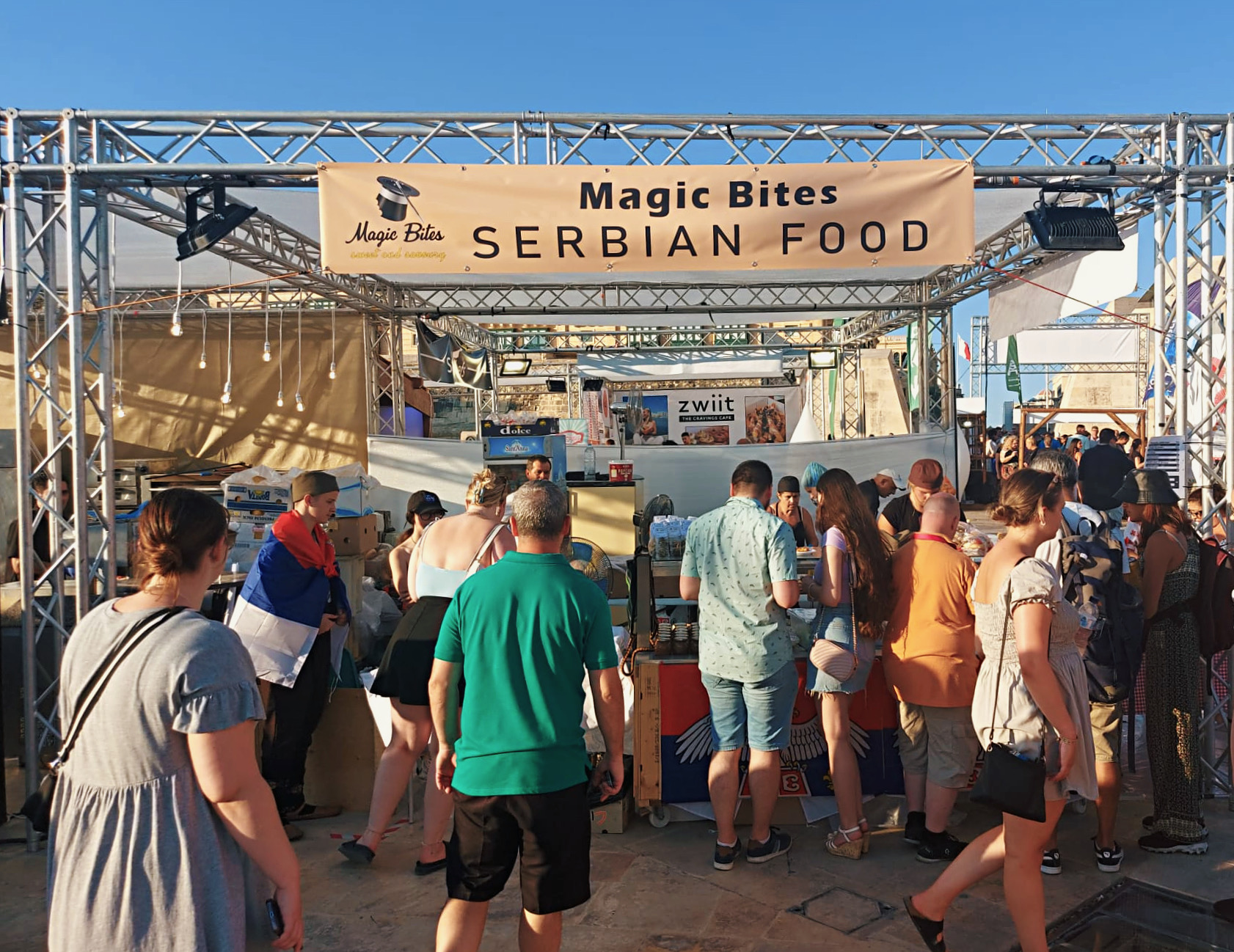 Na ovom našem magičnom putovanju po Malti, prošle godine našu zemlju smo predstavili na Internacionalnom festivalu hrane. Na festivalu su bile zastupljene kuhinje sa svih kontinenata, nekoliko desetina kuvara pripremalo je svoja tradicionalna jela za posetioce. Za naš tim ovo je neprocenjivo iskustvo. Predstavili smo se sa našim tradicionalnim kolačima, kuvanim jelima – sarma i pasulj sa sušenim mesom, čvarcima koji su između ostalih jedan od naših najprodavanijih proizvoda i naravno nezaobilzni roštilj – pljeskavice i kobasice. Prema rečima organizatora festivala, naš štand je bio među prva tri po broju posetilaca, što je za nas u tom momentu bio izuzetan uspeh.